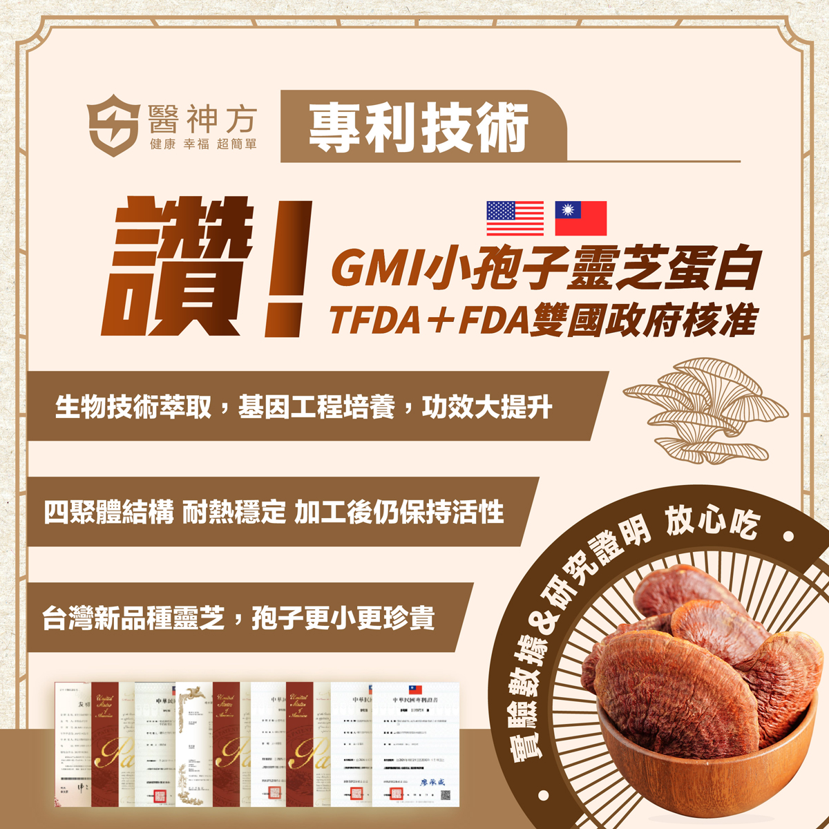 2. 台灣獨家黑科技!GMI 小孢子靈芝蛋白