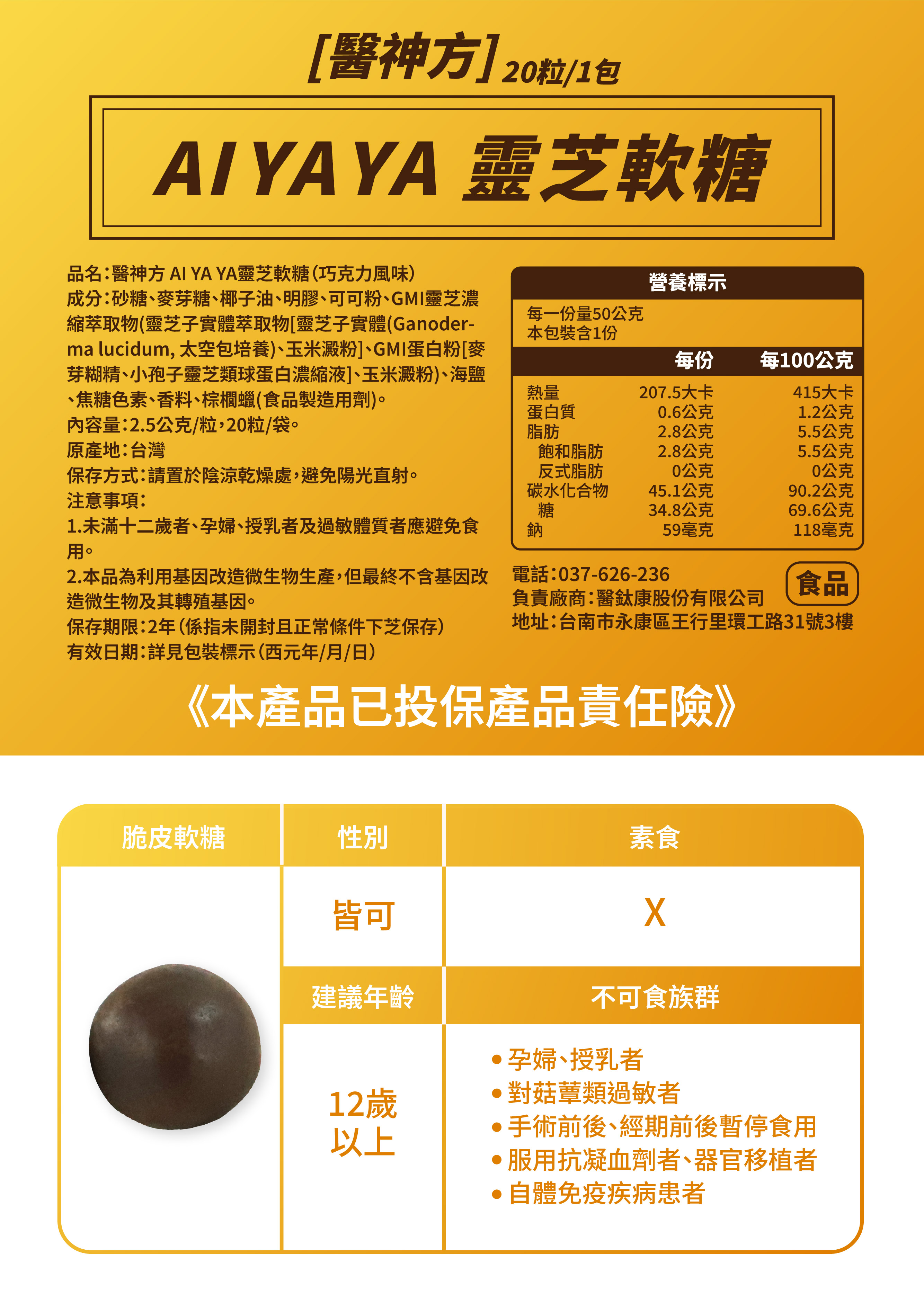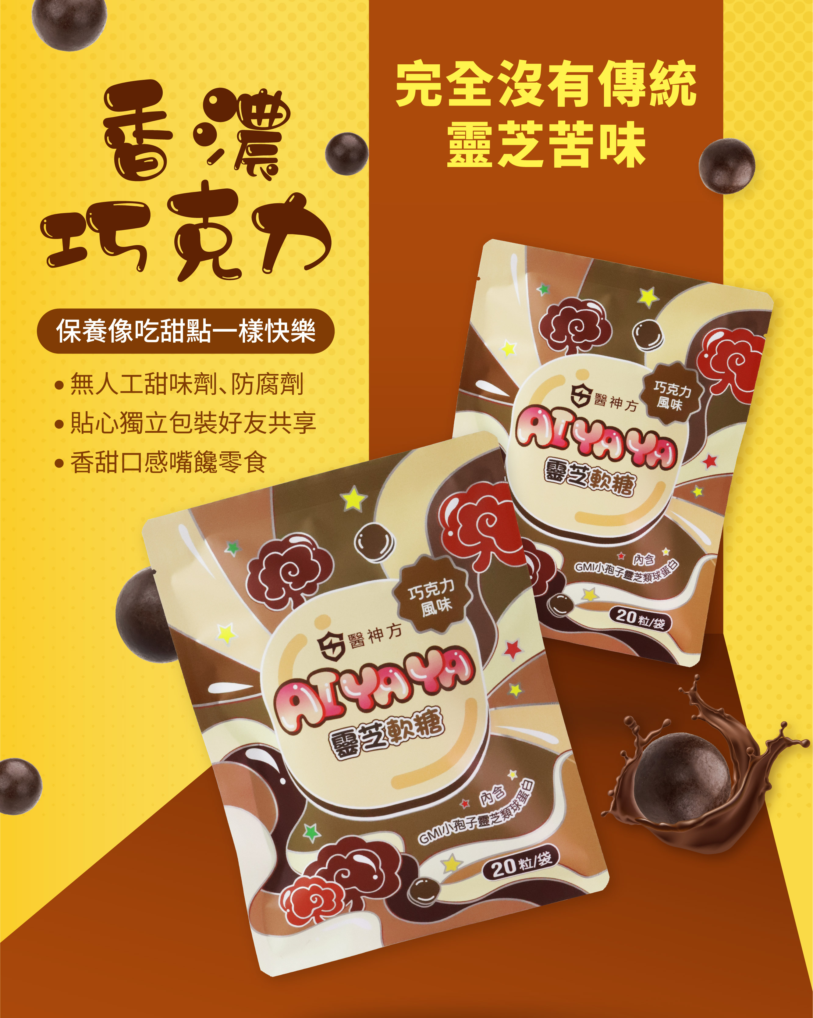 【品名】醫神方 AIYAYA靈芝軟糖(巧克力風味)