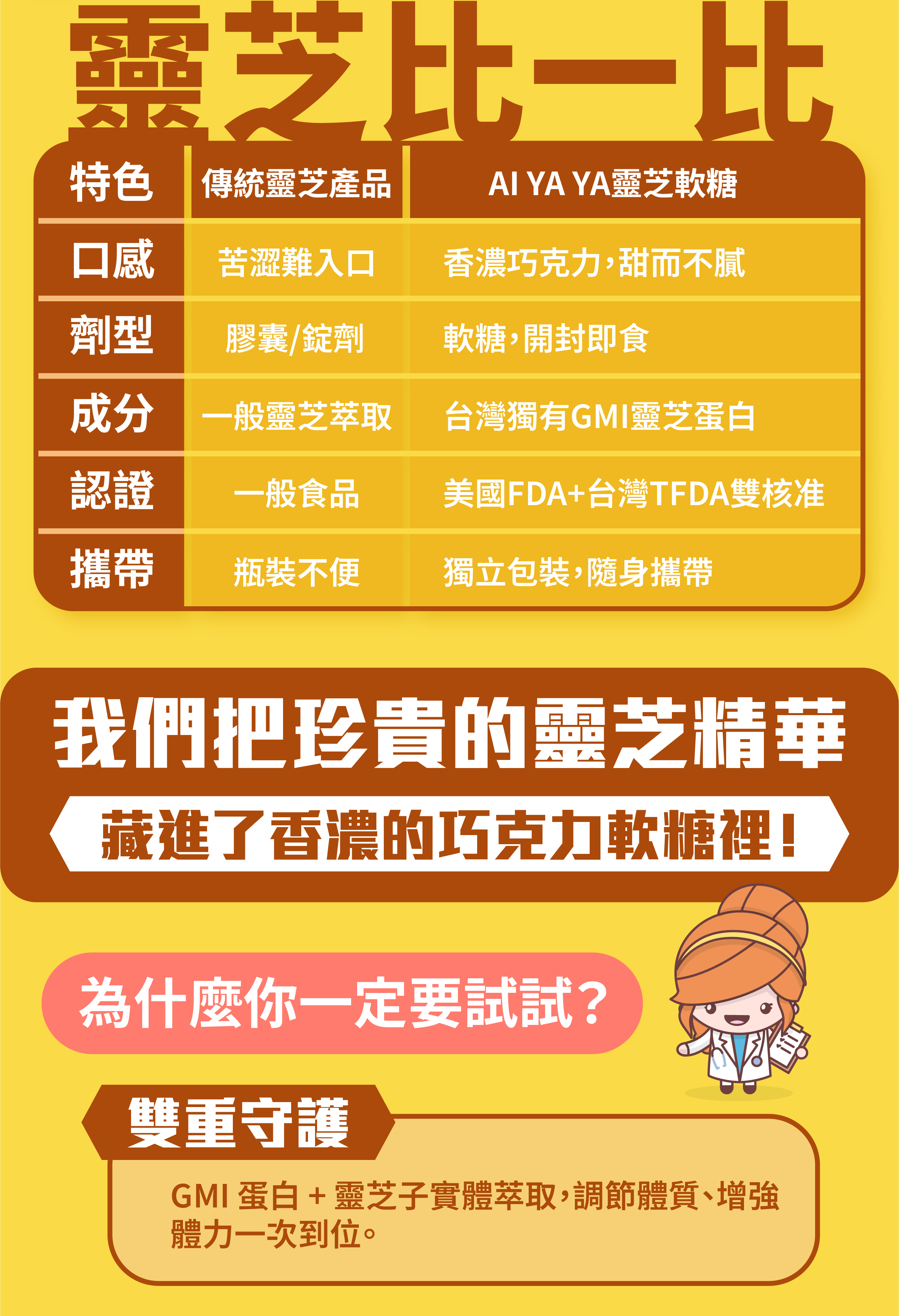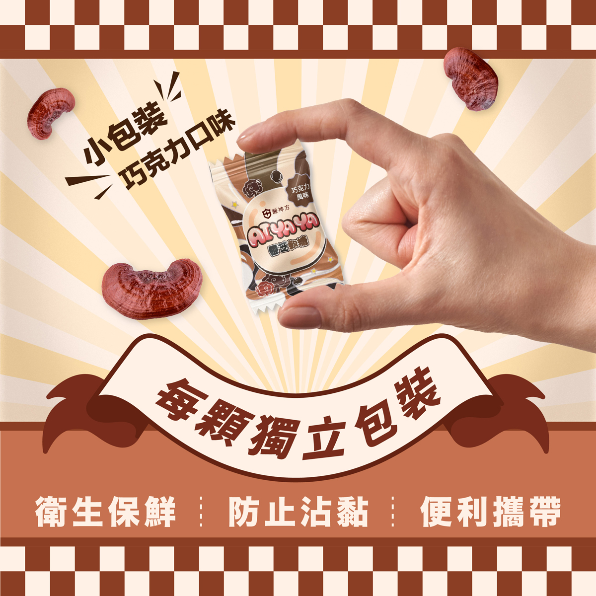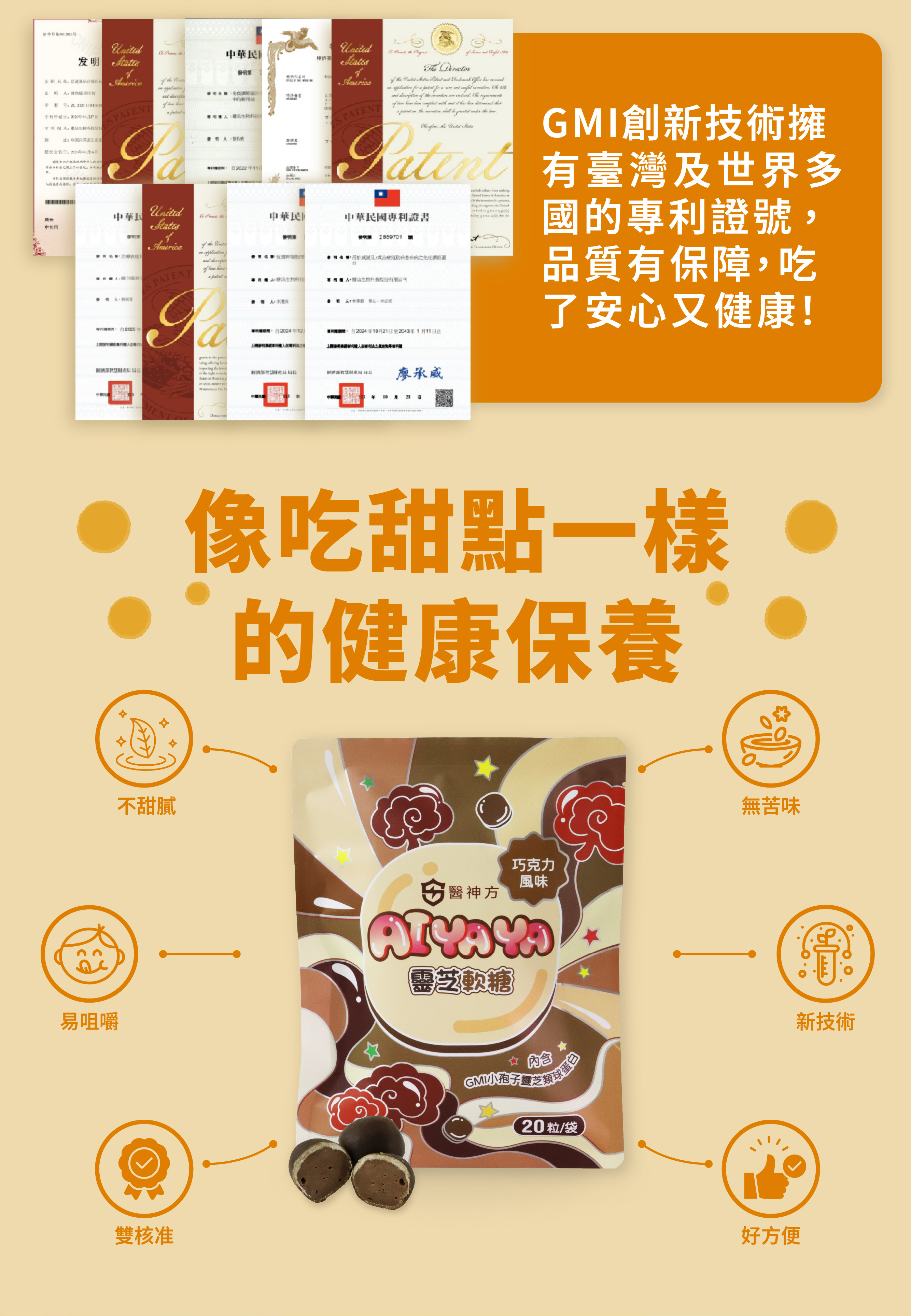 AIYAYA 利用生物技術萃取,將靈芝營養融入一顆美味巧克力軟糖中。